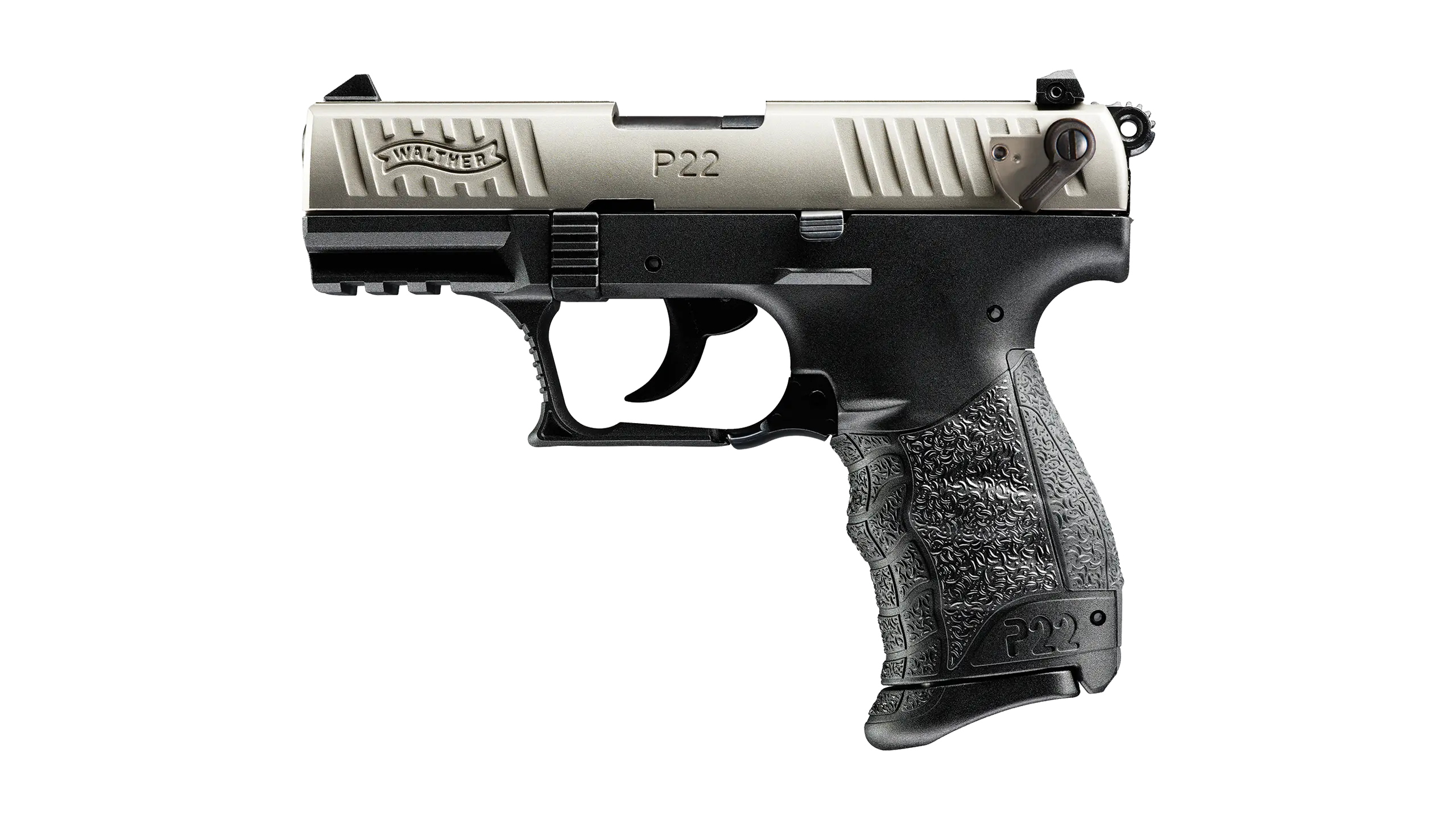 Stand out with the Walther P22 in Nickel and Black Two Tone, a .22 LR semi-automatic pistol featuring a 10-round capacity, designed to exceed expectations with style and performance.