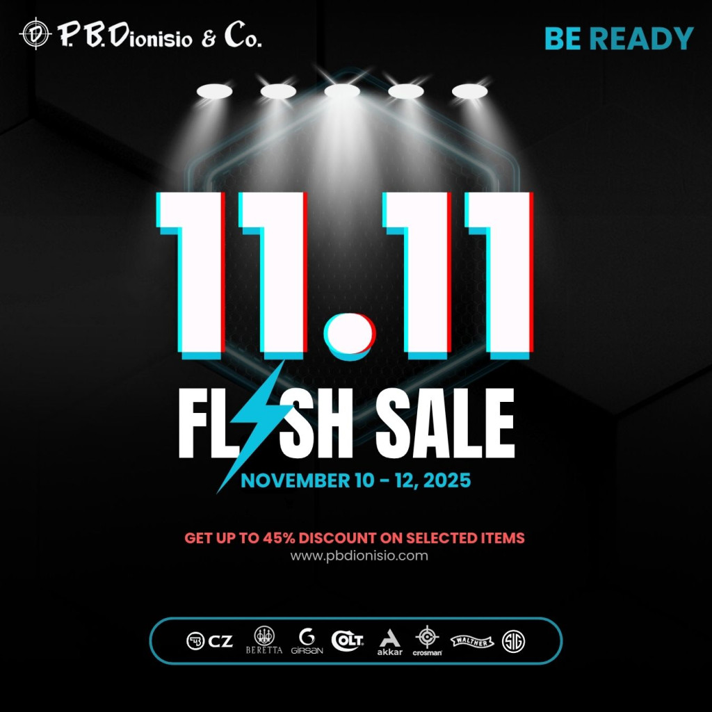 Get up to 45% off on selected firearms, airguns, imported ammo, parts, and accessories at P.B. Dionisio & Co. on November 10 to 12, 2025.