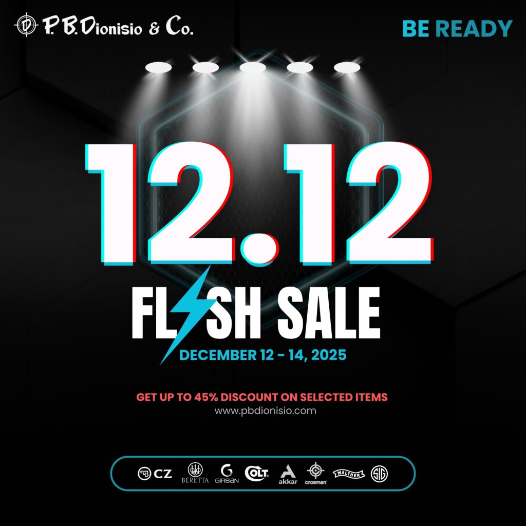 Get up to 45% off on selected firearms, airguns, imported ammo, parts, and accessories at P.B. Dionisio & Co. on December 12 to 14, 2025.
