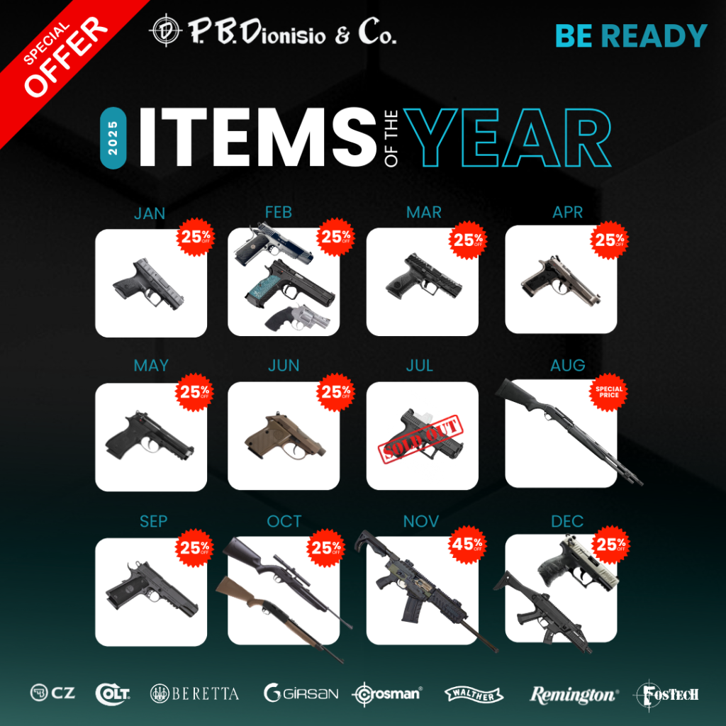 BE READY for February’s Items of the Month: Girsan MC1911 S Bright White, CZ TS 2 Blue and Colt SB2BB-E.