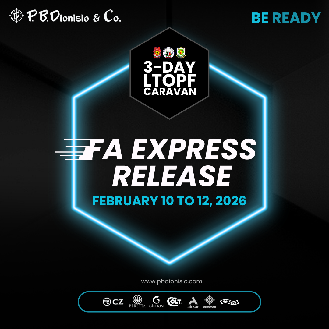 It’s not just an LTOPF Caravan — it’s an event you don’t want to miss! While you’re at P.B. Dionisio & Co., enjoy our Flash Sale + Firearm Express Release with discounts of up to 40% on a wide selection of firearms, ammo, parts, and accessories. Meet fellow enthusiasts and let our friendly sales team assist you throughout the day.