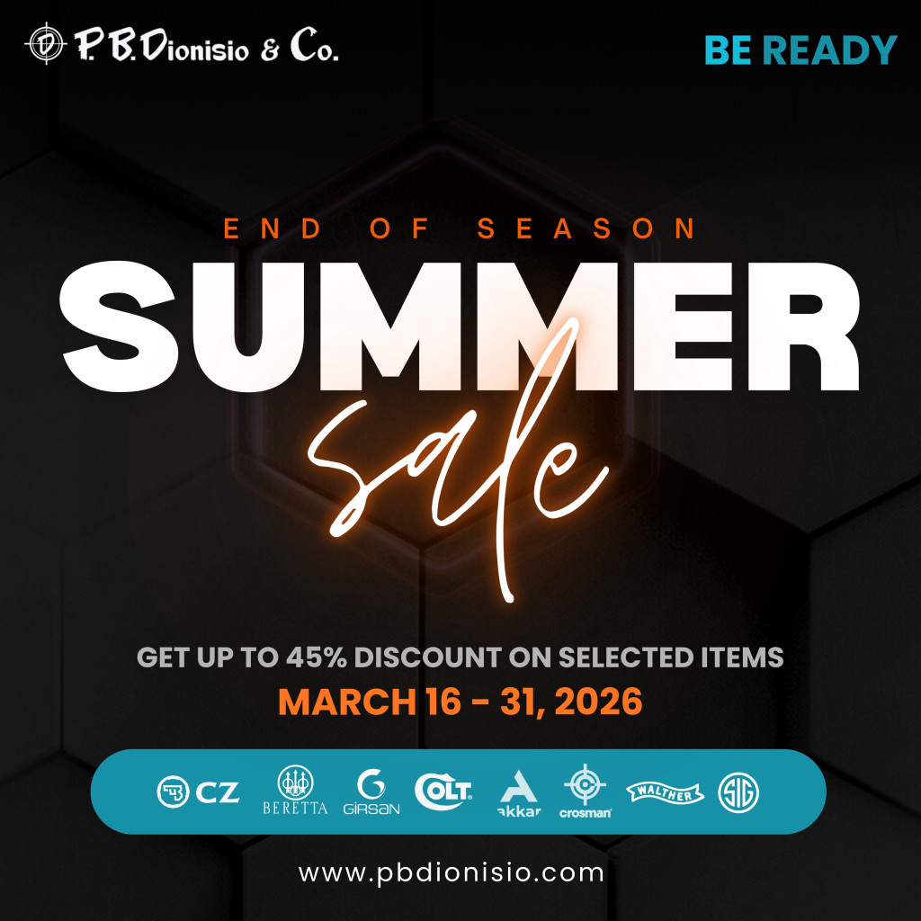 Get up to 45% off on selected firearms, airguns, imported ammo, parts, and accessories at P.B. Dionisio & Co. on March 16 to 31, 2026.