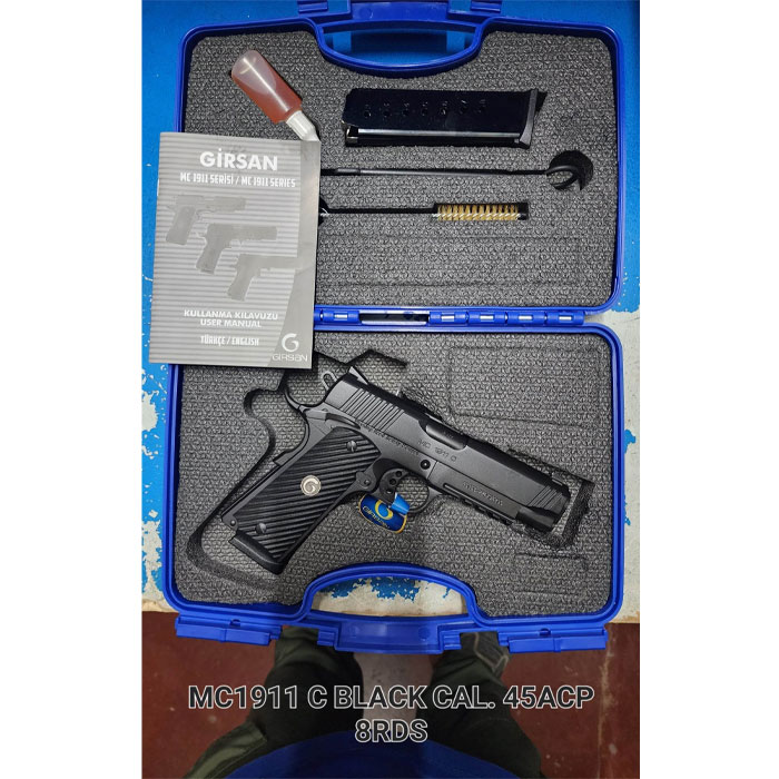 GIRSAN Pistol MC1911C Black Cal.45 8rds. 110.74mm bbl. Steel Frame, Dovetail Front/Rear Sights, Manual Safety Lever, Hammer/Grip Safety, Single Action