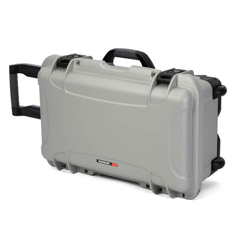 Measuring 22x14x9” it can store a whole lot of essential gear and still be carried on most airlines. The NANUK 935 protective case is convenient even when full of equipment and weighed down. Simply press the button and the retractable handle extends to your choice of two positions.