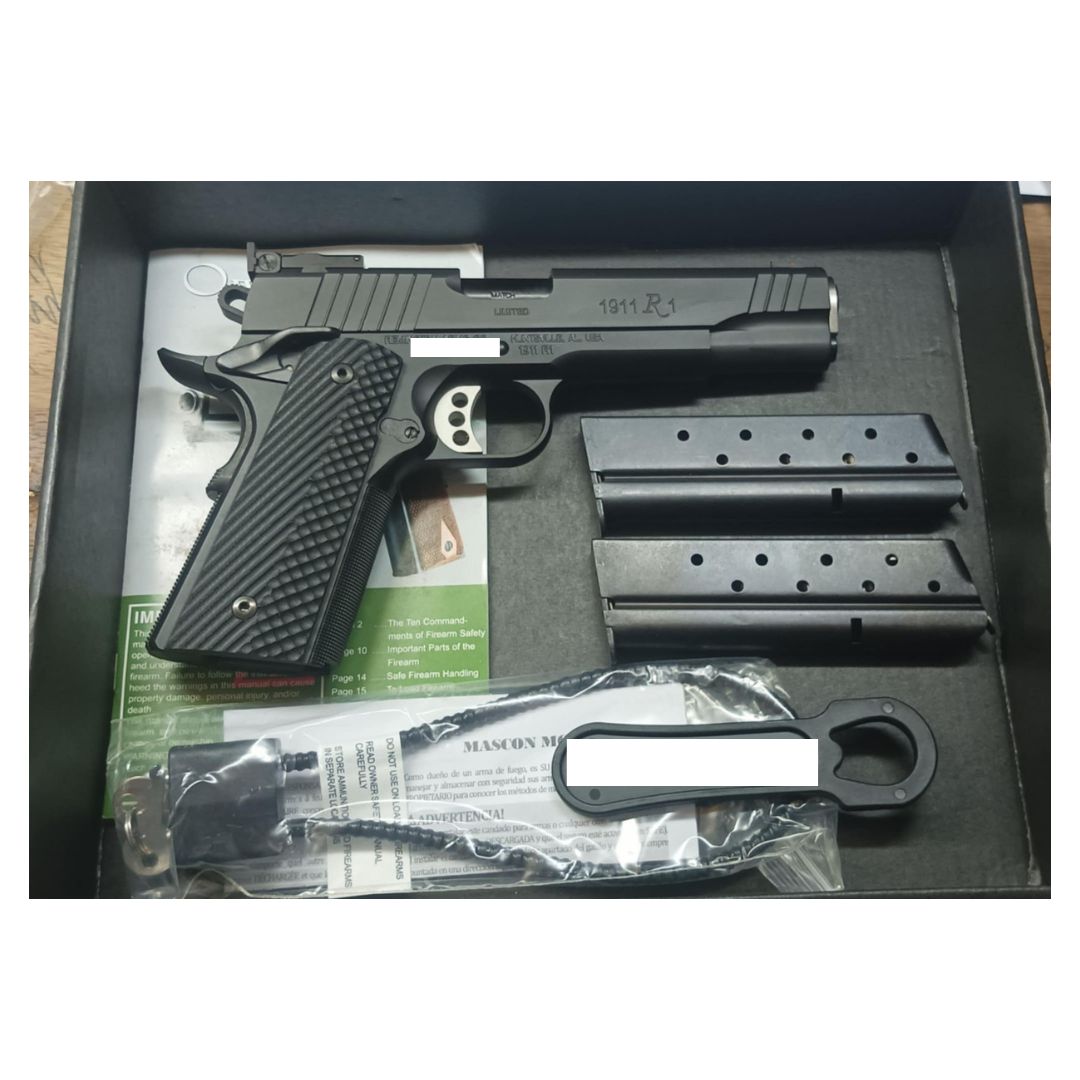 REMINGTON PISTOL, Model “1911 R1 LIMITED 9”.,Cal. 9MM, SA “Single Action” 5″ BBL., Carbon Steel Frame, Ion Bond Black Finish, Walnut G10 Grip, 9 rds. “96718” #0RMN-9MM-1911-R1-L9 *Unit is in good condition